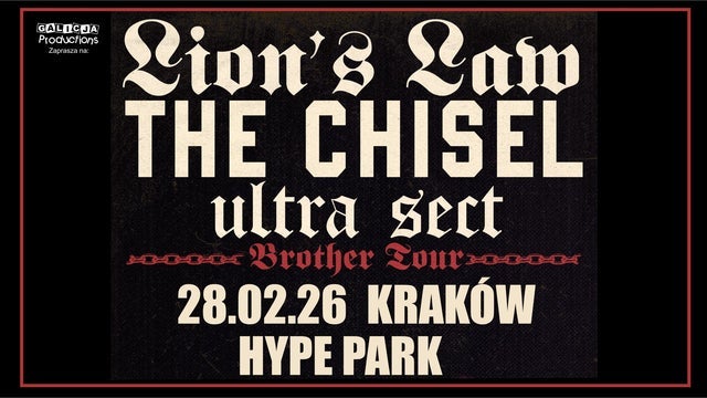 HYPE PARK, Krakow Kamienna 12, , Krakow, PolandWydarzenie Lion's Law, The Chisel, Ultra Sect odbędzie się 28/02/2026, rozpoczynając o godzinie 19:00:00 w Hype Park